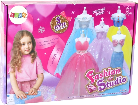 Åbn døren til modeverdenen med et kreativt kunstsæt, der lærer børn grundlæggende design og dekoration. Takket være de forberedte skabeloner med mål og en praktisk farve- og materialevifte er det let og sjovt at designe kjoler. Færdige modeller kan udstilles på to standere, så hver kreation kan vises frem.