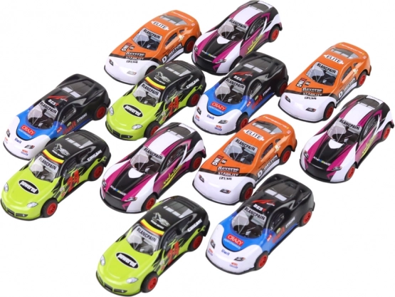 Dette sæt indeholder tolv stilfulde sportsbiler, som takket være friktionsdrev suser frem efter et let skub. Perfekt til hjemmeræs, forhindringsbaner og samlervitriner. Den kompakte størrelse gør dem lette at gribe for små hænder og sikrer bekvem leg både hjemme og på farten.