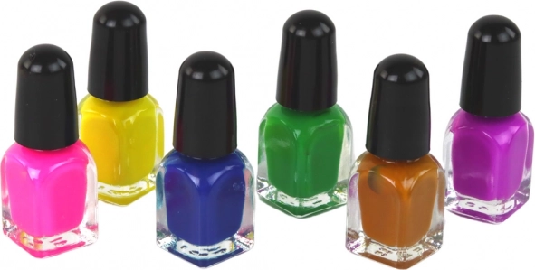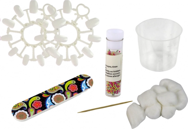 Sættet indeholder dekorative perler til legende 3D-effekter – det er nok at strø dem på den våde lak. Børn kan også dekorere kunstige negle og eksperimentere med former og længder. Den særlige kop er beregnet til at blande egne farver, så fantasien har ingen grænser.
