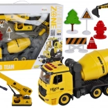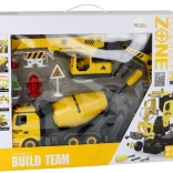 Oplev et interaktivt byggesæt for små ingeniører: tre entreprenørmaskiner i én – betonblander, kran og gravko – i skala 1:12. Børn kan selv samle og skille køretøjerne ad med en skruetrækker, mens lys- og lydeffekter giver legen ekstra realisme. Sættet indeholder også vejskilte og andet tilbehør til at skabe din egen byggeplads. Sikre materialer opfylder CE og EN71.