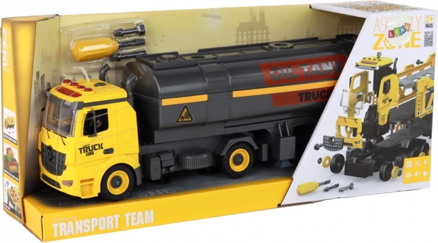 Denne realistiske gule monterbare tankbil er et ideelt valg til kreative børn, der elsker byggesæt og store køretøjer. Med muligheden for at skrue dele sammen og skille dem ad øver små mekanikere hånd-øje-koordination og bevægelsespræcision.