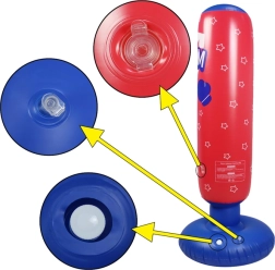 Vi præsenterer en oppustelig boksepude – den ideelle makker for unge sportsentusiaster! Denne farverige pude i intense nuancer af rød og blå er ikke kun et træningsredskab, men også en kilde til masser af sjov.