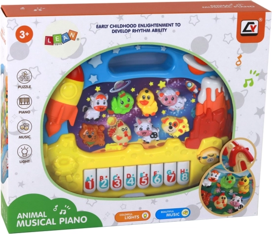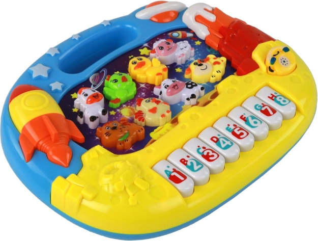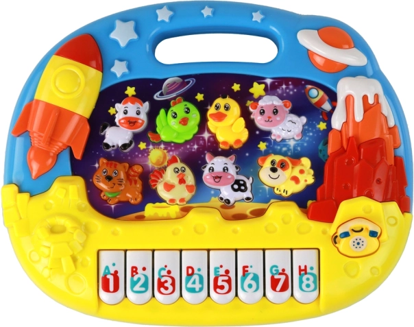 Pædagogisk klaver med rumtema er et fascinerende legetøj, der kombinerer læring i engelsk, matematik, dyrelyde og udforskning af rummet. Dette interaktive keyboard er ikke kun et læringsredskab, men også en kilde til inspiration og fascination for de mindste.