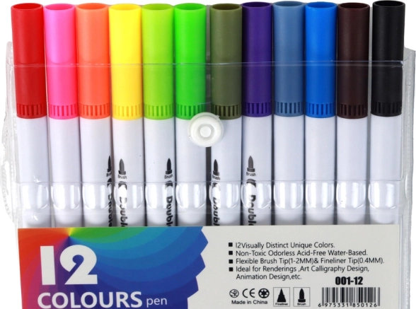 Sættet indeholder 12 dobbeltspidsede tuscher, som gør det muligt at udtrykke kreativitet på den mest farverige måde. Uanset om du er professionel kunstner eller begynder, vil vores tuscher opfylde dine forventninger til kvalitet og variation.