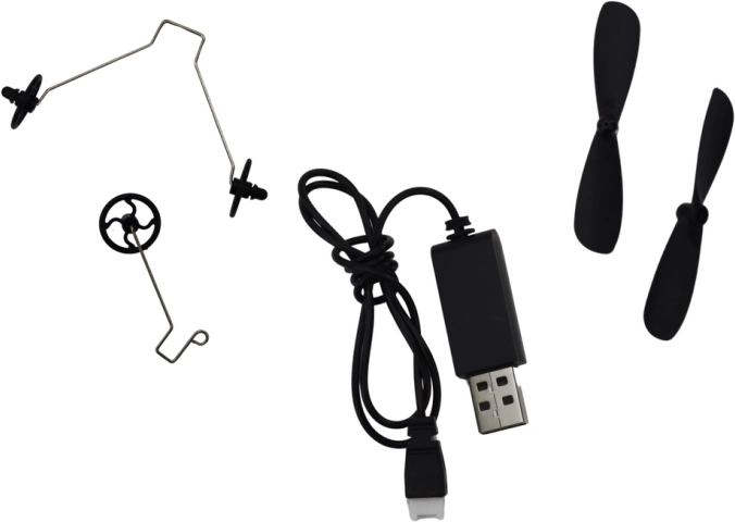 Flyet drives af et 150 mAh-batteri, som er inkluderet i sættet. Oplader medfølger.