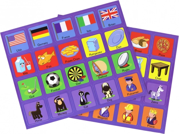 Sæt med 40 illustrerede kort med genstande, dyr og symboler hjælper med genkendelse og udvider engelske ordforråd på en sjov måde.