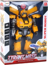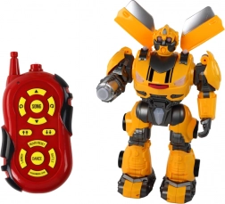 Robotten er lavet af holdbar plast med et markant gul-sort design og bevægelige lemmer. Den solide konstruktion sikrer lang levetid og sikker brug. Takket være CE-certificering og overensstemmelse med EN71 er den velegnet til børn fra 3 år.