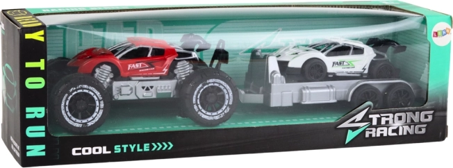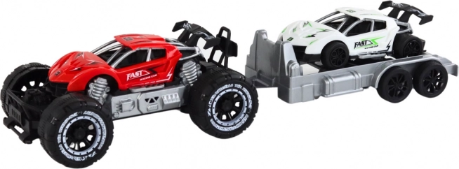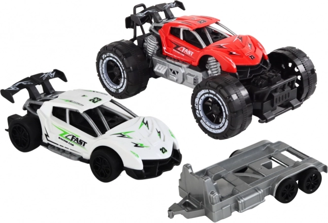 Bag bilen er der koblet en trailer, hvorpå der står en mindre hvid sportsvogn, klar til nye udfordringer. Det, der gør dette sæt virkelig enestående, er dets ekstraordinære funktionalitet. Traileren kan til enhver tid frakobles den røde bil, hvilket giver mulighed for at skabe endnu mere komplekse historier og udvikle dit barns fantasi.