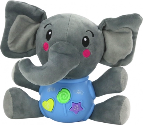 Denne interaktive lille elefant bliver hurtigt en elsket ven for ethvert barn. Den er lavet af meget blød, behagelig plys, skånsom mod børns hud, og takket være de kompakte mål er den perfekt til at kramme og lege med både hjemme og på farten.