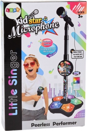 Vores mikrofon leveres desuden med et justerbart stativ, som gør det muligt at tilpasse mikrofonens højde til barnets højde, hvilket sikrer bekvemmelighed og komfort under sang.