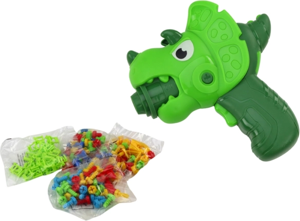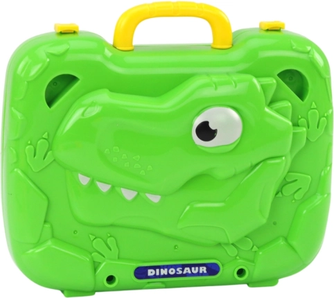 Dette smarte DIY-sæt kombinerer leg og læring: når kufferten åbnes, står den på fire ben og bliver til et stabilt arbejdsbord. To perforerede plader er grundlaget for at skrue og bygge fantasifulde 2D- og 3D-konstruktioner. Sættet inkluderer en børneboremaskine i dinosaurform på batteri, en nøgle samt et rigt udvalg af skruer, møtrikker og geometriske former i glade farver.