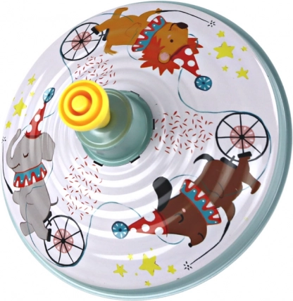 Vores snurretop er et klassisk symbol på barndommen, som glæder og fascinerer den dag i dag. Den er lavet af metal, hvilket giver både holdbarhed og en autentisk karakter af traditionelt legetøj. Pyntet med cirkusdyr-motiv får snurretoppen en unik charme, der passer perfekt til den legende stemning.