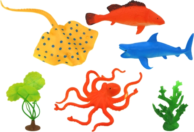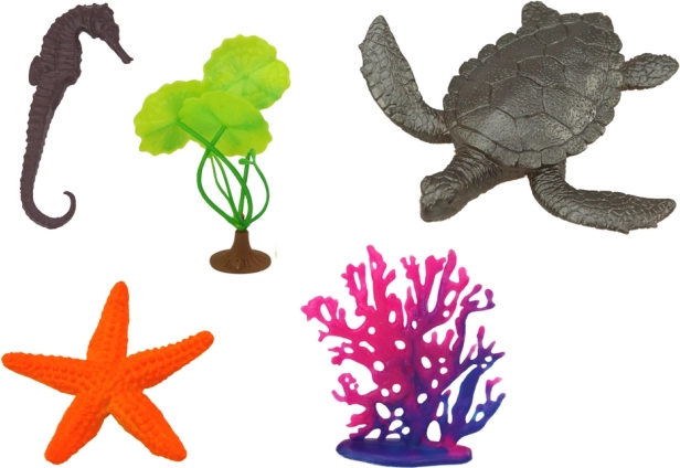 Sæt med figurer af havdyr – 7 stk. og vandplanter