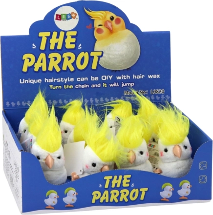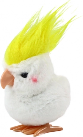 Denne optrækkelige plyspapegøje i kakaduestil imponerer med den bløde hvide pels og den markante gule topkam. Den egner sig perfekt som en lille gave, som pynt på hylden og som daglig legekammerat. Når mekanismen trækkes op, hopper papegøjen glad og sætter gang i legen på få sekunder.