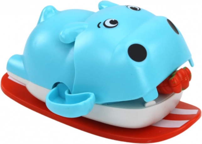 Den søde flodhest til badekarret forvandler hvert bad til leg. Drej blot den “gulerod” i munden, og flodhesten begynder glad at bevæge sig på vandet. Legetøjet er sikkert, nemt at bruge og støtter fantasien samt forståelsen af bevægelse i vand. Velegnet fra 12 måneder, fås i grå eller blå farve.