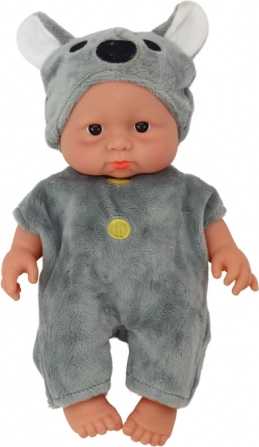 Denne charmerende babydukke i koala-stil er designet til små hænder og stor fantasi. Den bløde grå dragt med gule knapper og hue med koalaører giver dukken et uimodståeligt look. Takket være de bevægelige lemmer og det drejelige hoved kan børn let ændre positurer og skabe deres egne historier.