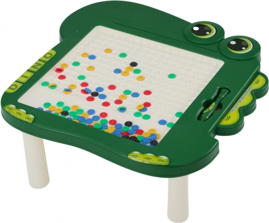 Tavlen har en gennemsigtig plade, bag hvilken der er farvede perler med magneter. Perlerne i sort, grøn, blå, rød og gul gør det muligt at skabe alsidige billeder, hvilket understøtter børns kreativitet og fantasi. Sættet inkluderer en magnetisk pen, som gør det nemt at skabe billeder og øger underholdningsværdien.