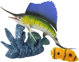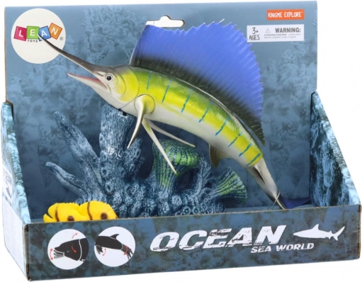 Figuren af sværdfisken er præcist udformet med hensyn til farve og anatomiske detaljer, hvilket giver den et autentisk udseende, der får børn til at føle sig som opdagelsesrejsende i havets verden.