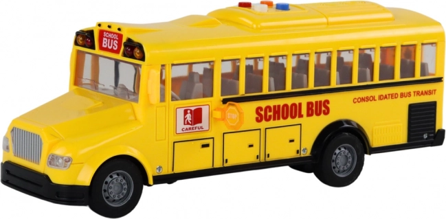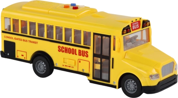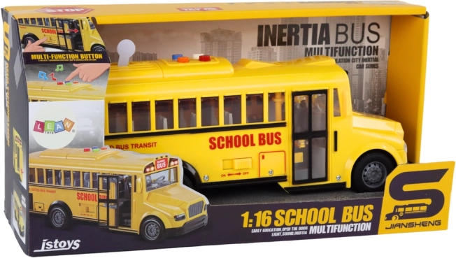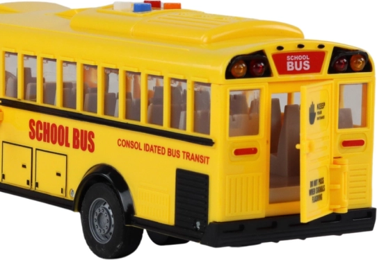 Skolebus 1:16 Friktionsdrev Åbnende døre Lys Lyde Gul