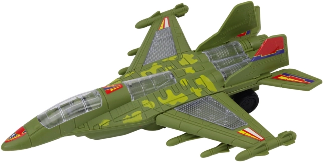 Dette grønne militære jagerfly forvandler børneværelset til en landingsbane fuld af action. Når det tændes, kører det selv, lyser op med farverige lys, og musik samt motorlyde høres – lige det, børn elsker. Takket være den smarte bump‑and‑go‑tilstand skifter det retning og undgår forhindringer gnidningsfrit.