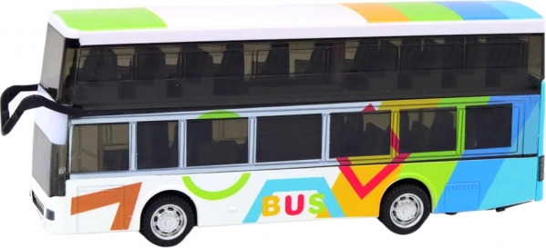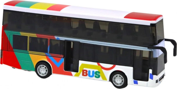 Sjov og robust legetøj til små fans af offentlig transport: en dobbeltdækker metalbus med svinghjuls- (friktions-) drev, lys- og lydeffekter samt åbnebare døre og bagagerum. Den metallige konstruktion sikrer lang holdbarhed, og realistiske detaljer understøtter kreativ leg.