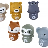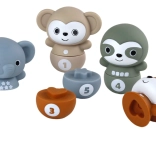 Hver af de 6 kegler viser et andet dyr og er markeret med et ciffer, så børn nænsomt øver genkendelse af tal og basal optælling. Den udskillelige konstruktion afslører forskellige former til matchning, som stimulerer kognitiv udvikling og støtter koncentrationen.