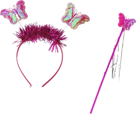 Sættet indeholder en lyserød hårbøjle med yndige sommerfugleører, som giver barnets hoved et særligt strejf af ynde og elegance. Med en tryllestav af skinnende materiale føler barnet sig som en rigtig fe, der udfører magiske trylleformularer og opfylder ønsker.