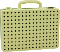 Alle komponenter opbevares i en robust kuffert med håndtag. Den perforerede side fungerer som byggeplade til skruning.