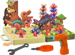 Børn skruer og skiller de enkelte dinosaurdele ad ved hjælp af en sikker, letbetjent boremaskine og værktøjer – ideelt til udvikling af finmotorikken.