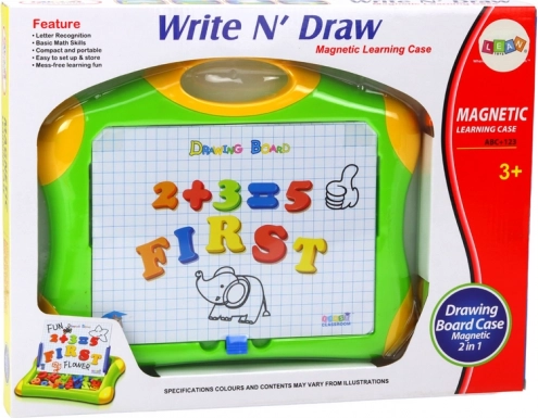 Sættet er udstyret med magneter formet som bogstaver og tal, hvilket gør det muligt for børn at danne ord og matematiske opgaver når som helst. Det understøtter deres udvikling i et sjovt miljø.