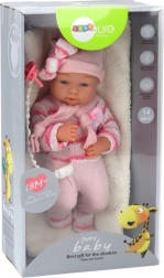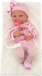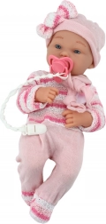 Denne lyserøde babydukke med en stilfuld strikket cardigan i striber, hue og halstørklæde er en ideel ledsager til daglig leg. Takket være de bevægelige lemmer kan dukken nemt sættes og lægges, hvilket understøtter kreative scenarier og realistisk omsorg.