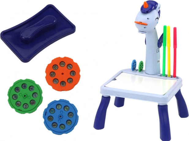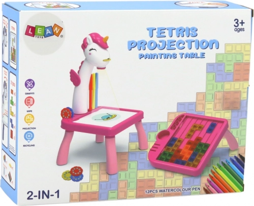 Oplev magien ved at tegne med en mini projektor formet som en sød enhjørning. Børn projicerer blot en skabelon på bordpladen og tegner den op med tuscher – de udvikler hurtigt visuel perception, tålmodighed og fingerfærdighed. Den anden del af sættet er et TETRIS-puslespil, som træner rumlig fantasi og planlægning.