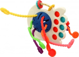 Det sensoriske blæksprutte-legetøj er en unik interaktiv hjælper til børn, som udvikler sanser og motoriske færdigheder. Det giver mange muligheder for leg, såsom at trække i farvede snore og trykke på bobler, hvilket understøtter udviklingen af taktile evner og bevægelseskoordination.
