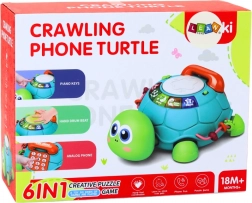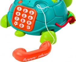 Dette legetøj har en multifunktionel telefon og tastatur, der giver børn mulighed for at simulere telefonopkald og øge den realistiske oplevelse gennem opkalds- og ringelyde. Fem knapper på skildpaddens skal giver mulighed for at høre navnene på tal, bogstaver, instrumentlyde og dyrelyde samt glade melodier.