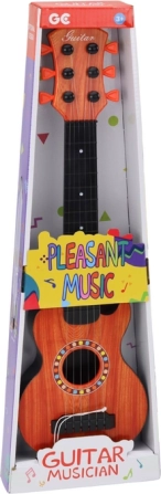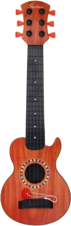 På guitarens bagside finder du knapper til at spænde strengene, som gør det muligt at justere lyden efter brugerens præferencer. Dette legetøj er ikke kun en fremragende kilde til underholdning, men også et redskab til at udvikle børns musikalske færdigheder og kreativitet. Det støtter deres evne til selvudtryk gennem musik og hjælper dem med at opdage kunstneriske talenter på en venlig og sjov måde.