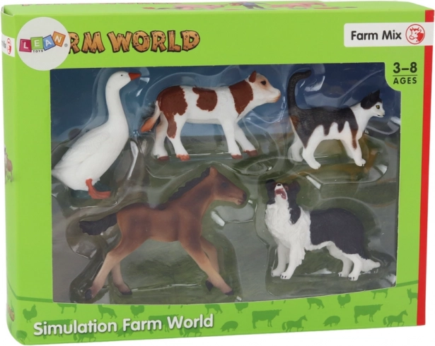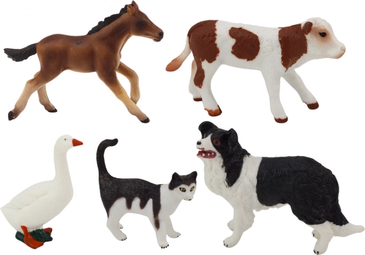Sæt med figurer af husdyr 5 stk. Hest Ko Kat Gås Hund