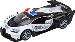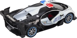 Tag ud på mission med den hvide RC-politibil, som trofast efterligner en sportsvogn med autentiske mærkater og blink. Fjernbetjeningen med styrepinde giver jævn drejning, acceleration og bremsning, så kørslen føles maksimal realistisk. Lyseffekter forstærker stemningen i politijagter.