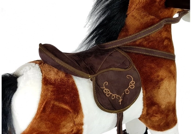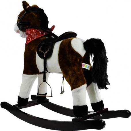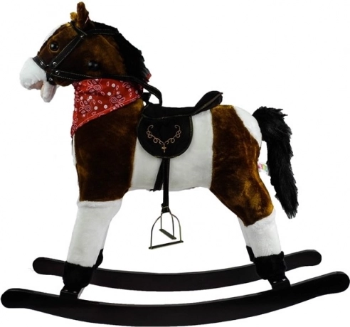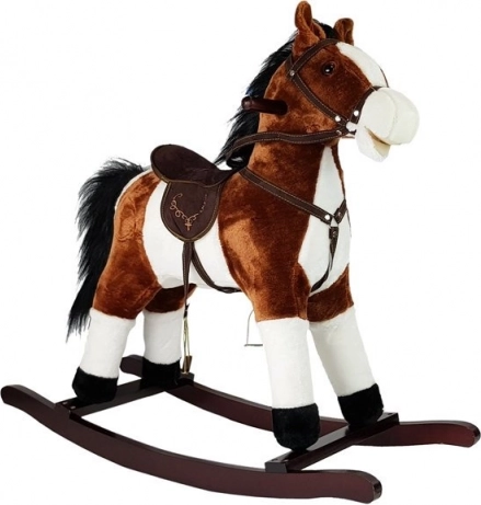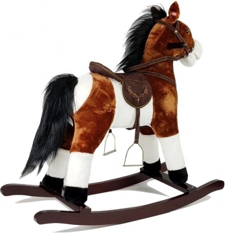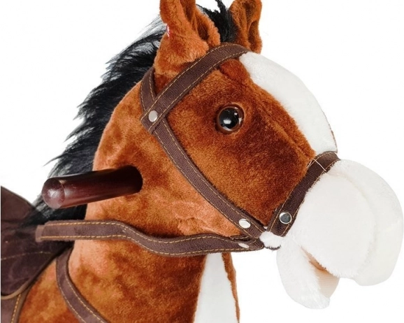 Vores mørkebrune gyngehest er lavet af blødt plysmateriale, som giver komfort under langvarig leg. Hesten er udstyret med realistiske lyde, der aktiveres ved at trykke på øret, og vækker stemningen af Det Vilde Vesten til live med lyde af vrinsken og galop.
