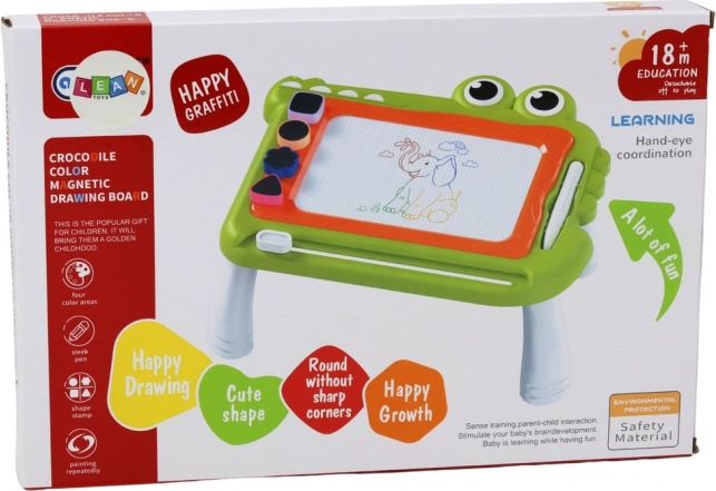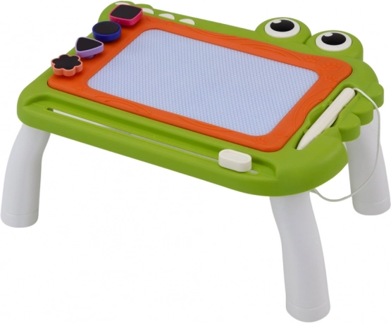 Tegnebord Znikopis Krokodille er det perfekte legetøj til små kunstnere. Det tilbyder moderne Znikopis-teknologi, som gør det muligt at tegne levende billeder uden rod. Ved at bruge den magnetiske stylus kan børn udtrykke deres kreativitet og nemt viske ud med et enkelt træk i skydeknappen.