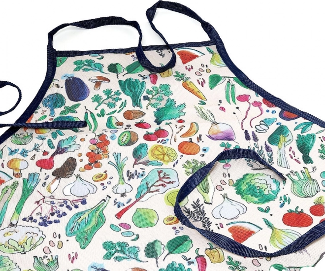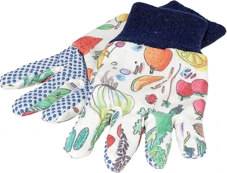 Farverige mønstre på forklæde og handsker gør havearbejde til en fornøjelig aktivitet.
