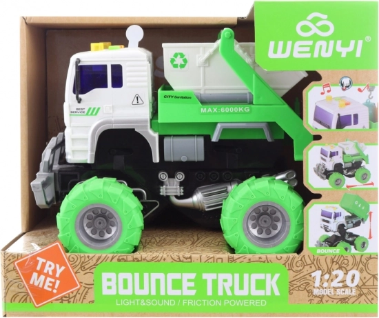 Legetøjs-byggebil med store gummibelagte hjul for fremragende stabilitet og kørsel, med lys- og lydeffekter samt tippelad. Drives af 3× AG13-batterier, som medfølger i pakken. Ideel til børn fra 3 år.