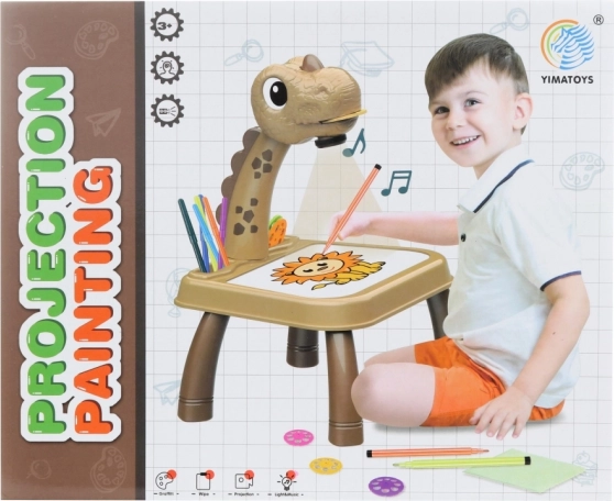 Denne tegneprojektor til børn er et fremragende valg til små kunstnere fra 3 år. Sæt blot en af billedskiverne i dinosaurens mund, og projektoren projicerer motivet på papiret, som børnene nemt kan tegne efter. Sættet er designet til at understøtte kreativ leg og udvikle koordinationsevner.