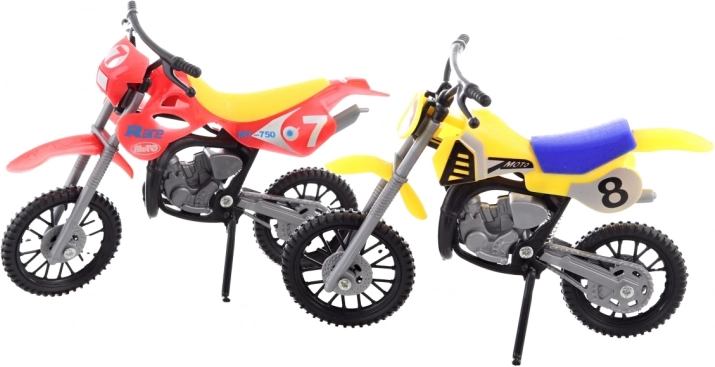 Pakken indeholder 2 motorcykler med friløbshjul og støttefødder, ideel til kapløb og fælles leg mellem søskende.