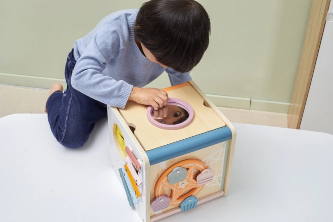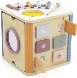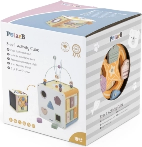 Viga PolarB Edukativ terning 8-i-1 tilbyder otte forskellige aktiviteter, der understøtter flere sider af barnets udvikling. Legetøjet indeholder:
