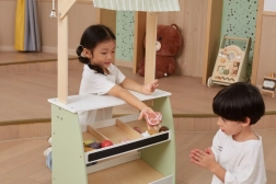 Boden er designet med sans for detaljer, såsom hylder og klokke, der understøtter børns fantasi.