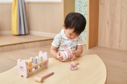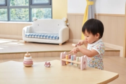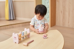 Med brug af hammeren og pyramidebygning forbedrer børn deres motoriske færdigheder.