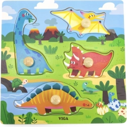 Træpuslespillet med dinosaurer er et unikt legetøj, der kombinerer leg og læring. Det indeholder 4 forskellige puslespilsbrikker, som er nemme at gribe takket være de praktiske knopper, og placere på det rigtige sted på træpladen. De stærke farver og realistiske dinosaurformer opmuntrer børn til mere leg og læring.