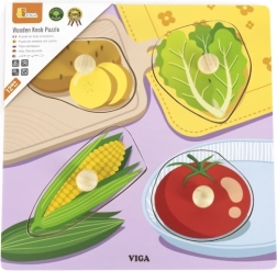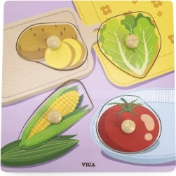Viga træpuslespil med grøntsager er et fremragende værktøj til lærende leg fra 12 måneder. Puslespillet er designet til at stimulere hånd-øje-koordination og udvikle hukommelse og logisk tænkning. Takket være knopperne på de enkelte brikker kan børn nemt placere grøntsagsdelene i de tilsvarende huller.