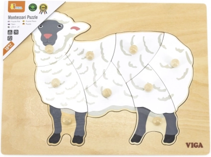 Denne kvalitets træ-montessori puttekasse med fåremotiv er en fantastisk hjælp til at udvikle børns færdigheder. Brikkerne med praktiske knopper er lette at holde om, så børn naturligt lærer korrekt greb, tålmodighed og fokus. Puttekassen er lavet af holdbart træ og er et glimrende valg som det første træpuslespil til børn.