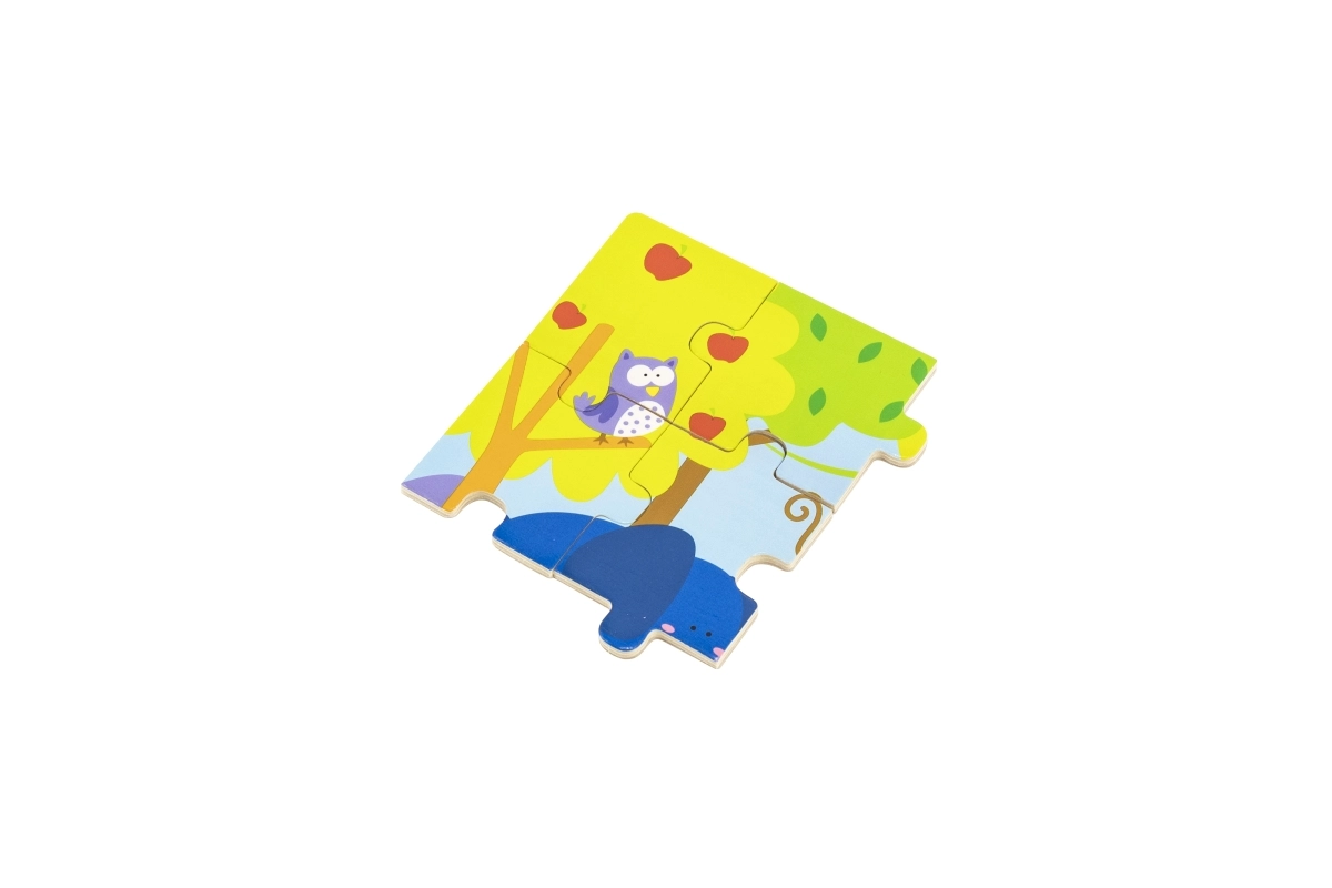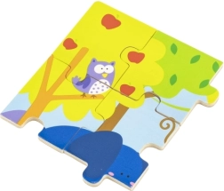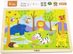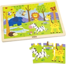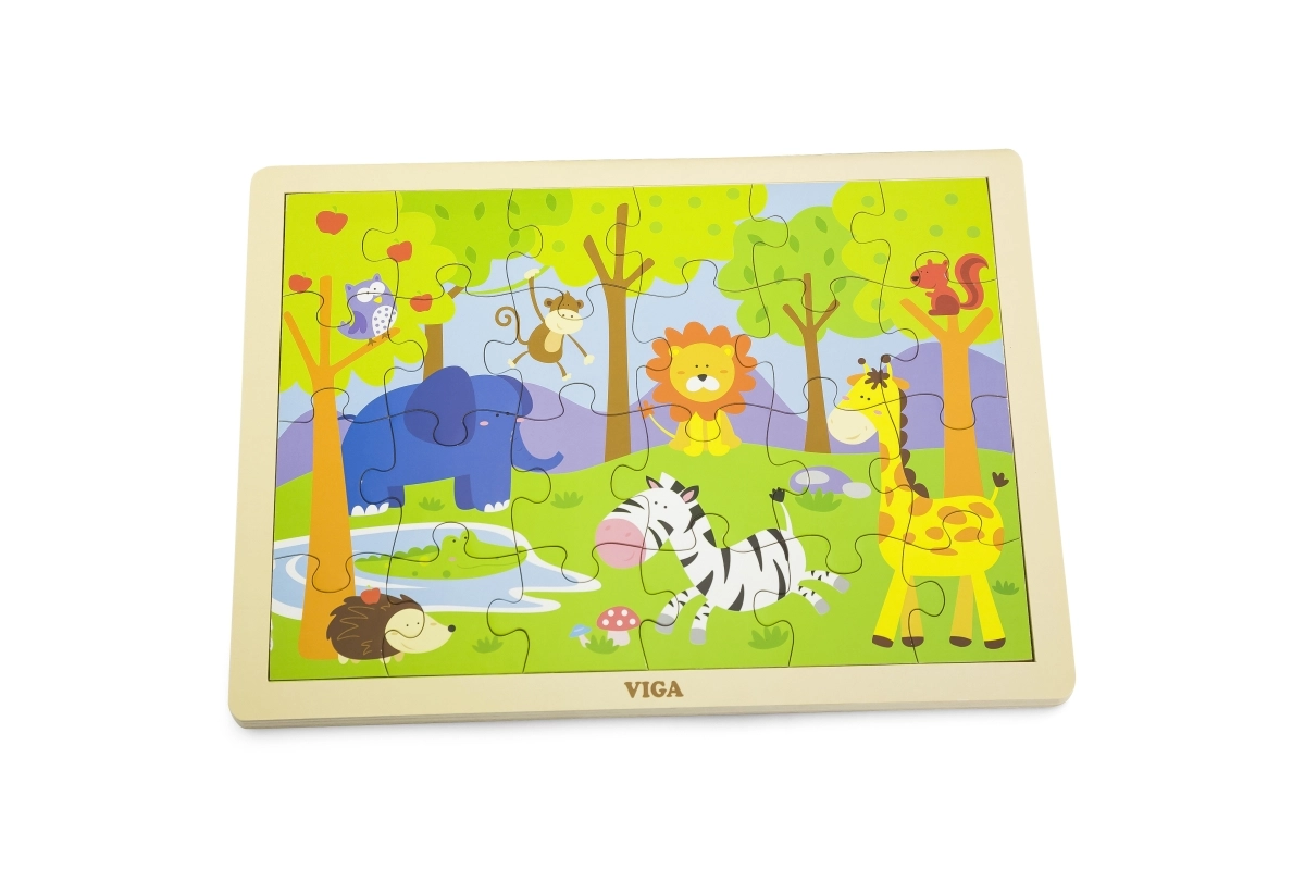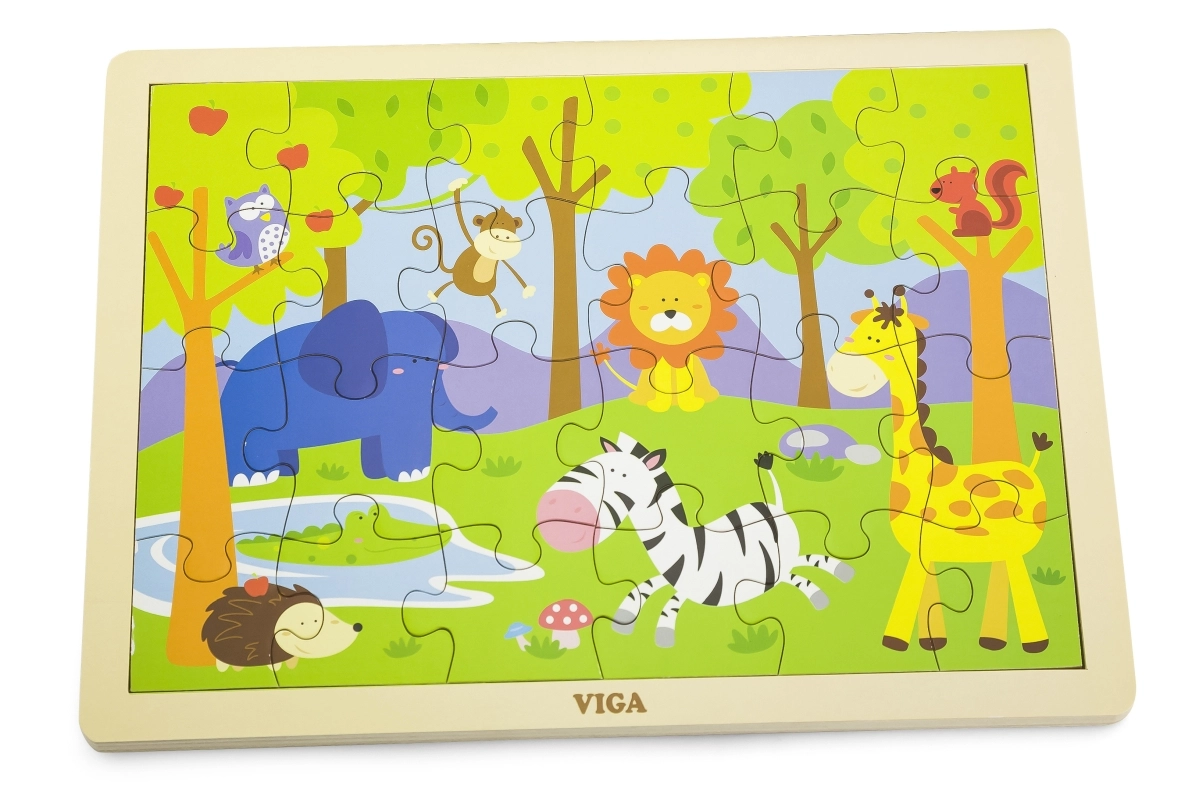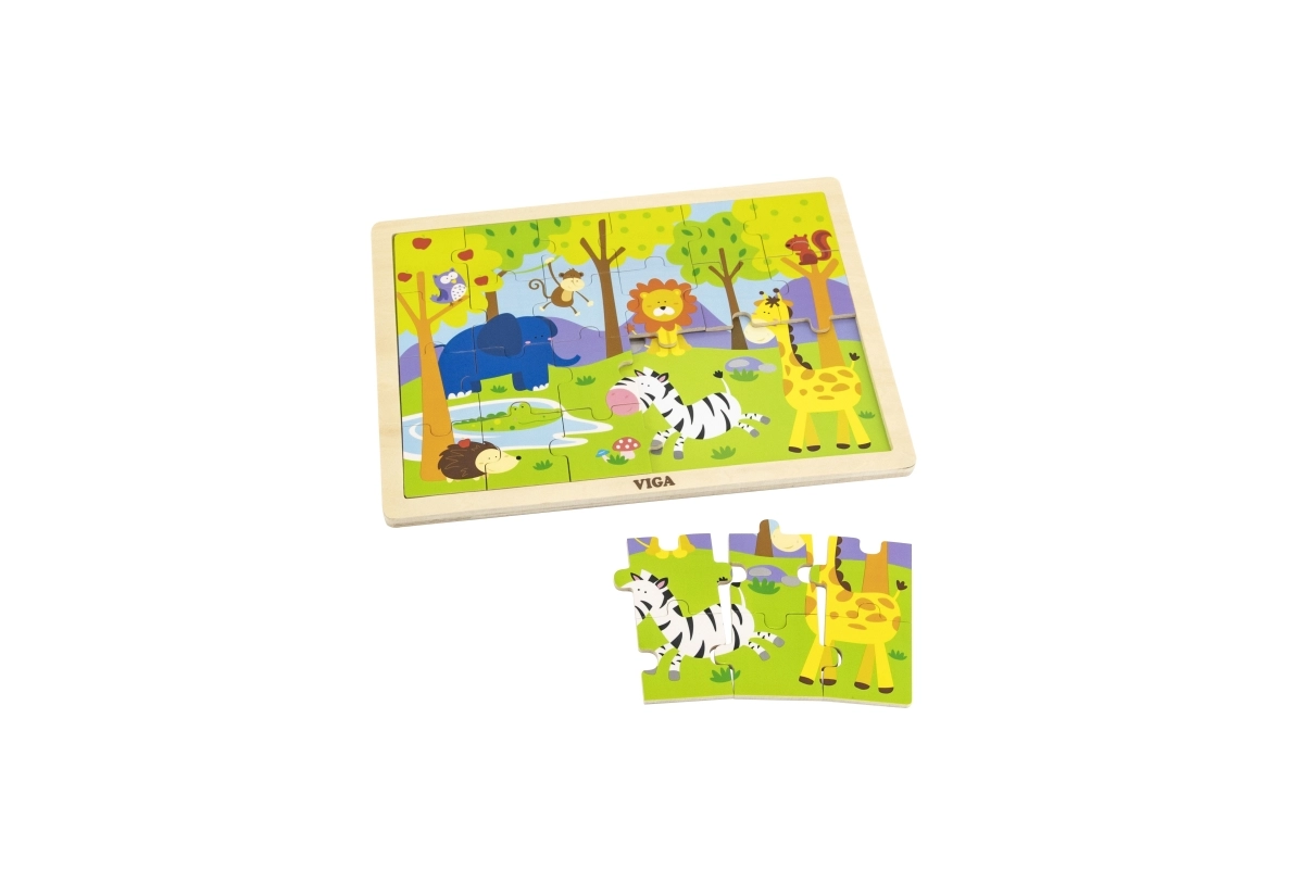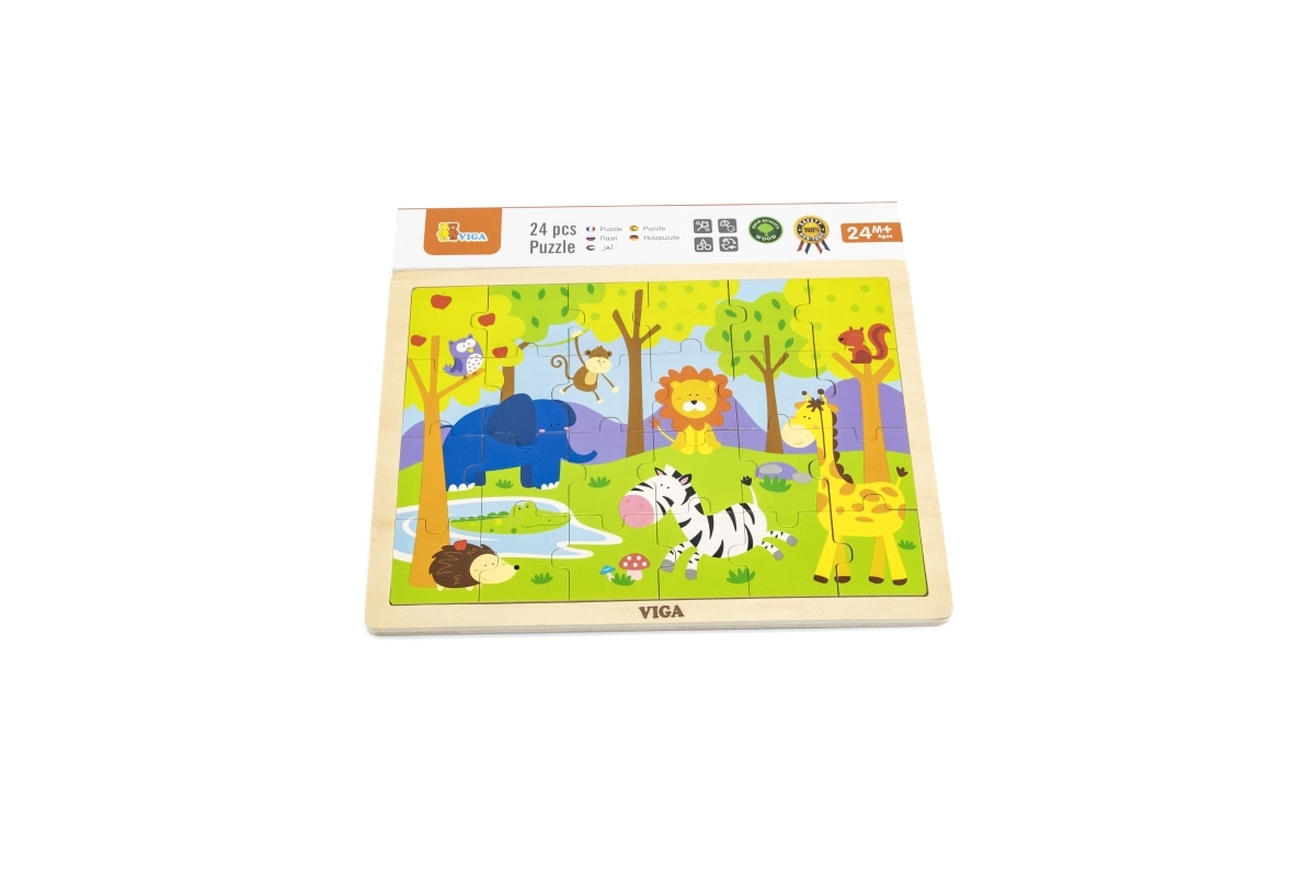 Træpuslespil med et zoo-motiv. I alt 24 brikker. Billedstørrelse ca. 27,5 x 20 cm. Pakningsstørrelse ca. 30 x 27 x 1 cm. Alder 24 m+.